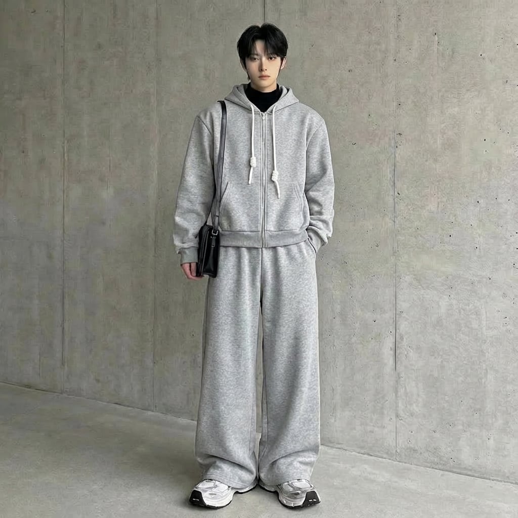 ワイドシルエット フード付きスウェット セットアップ 2カラー D11421