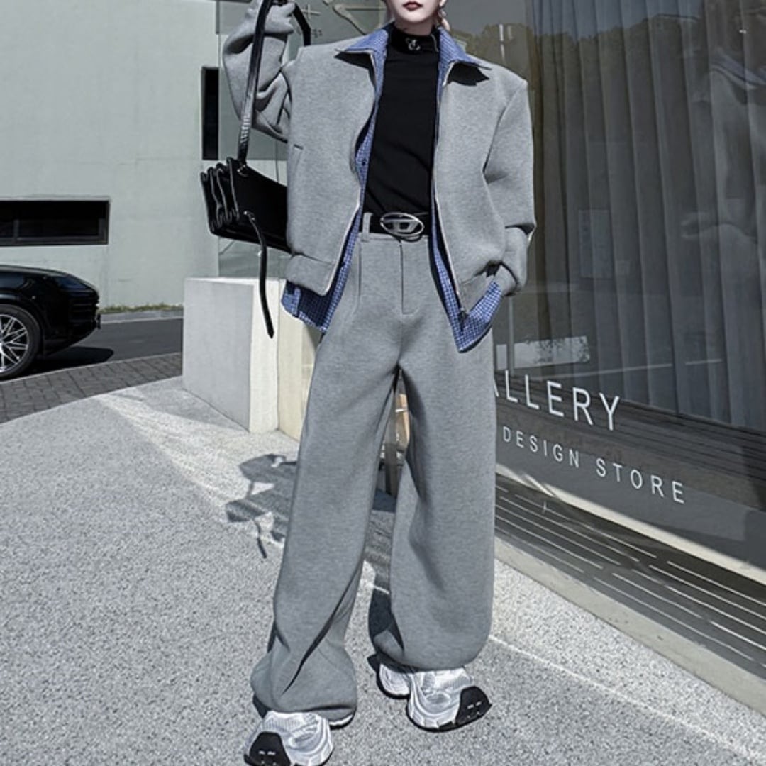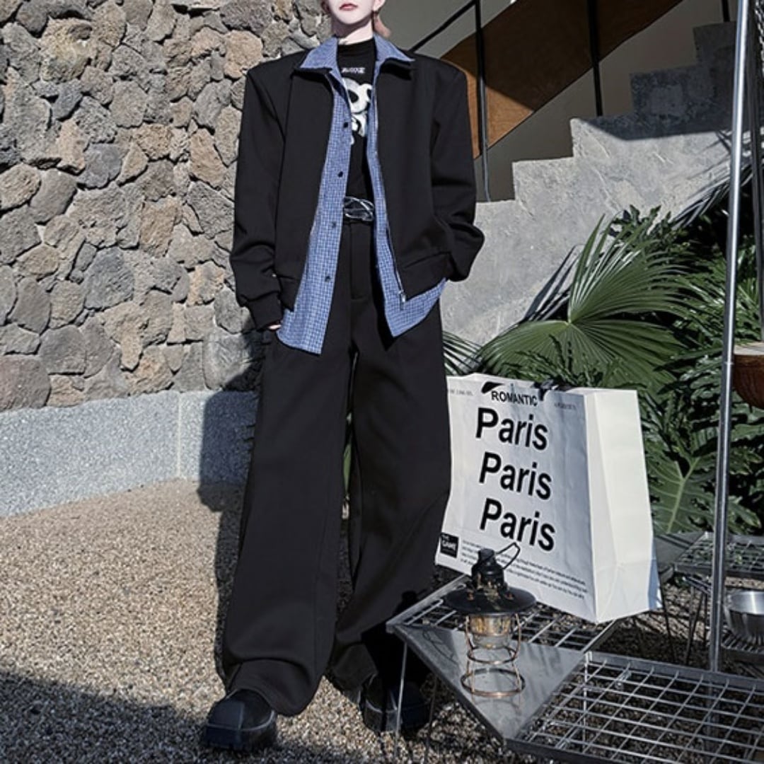 フェイクツーピース コントラストカラー カジュアルセットアップ 2カラー D11438