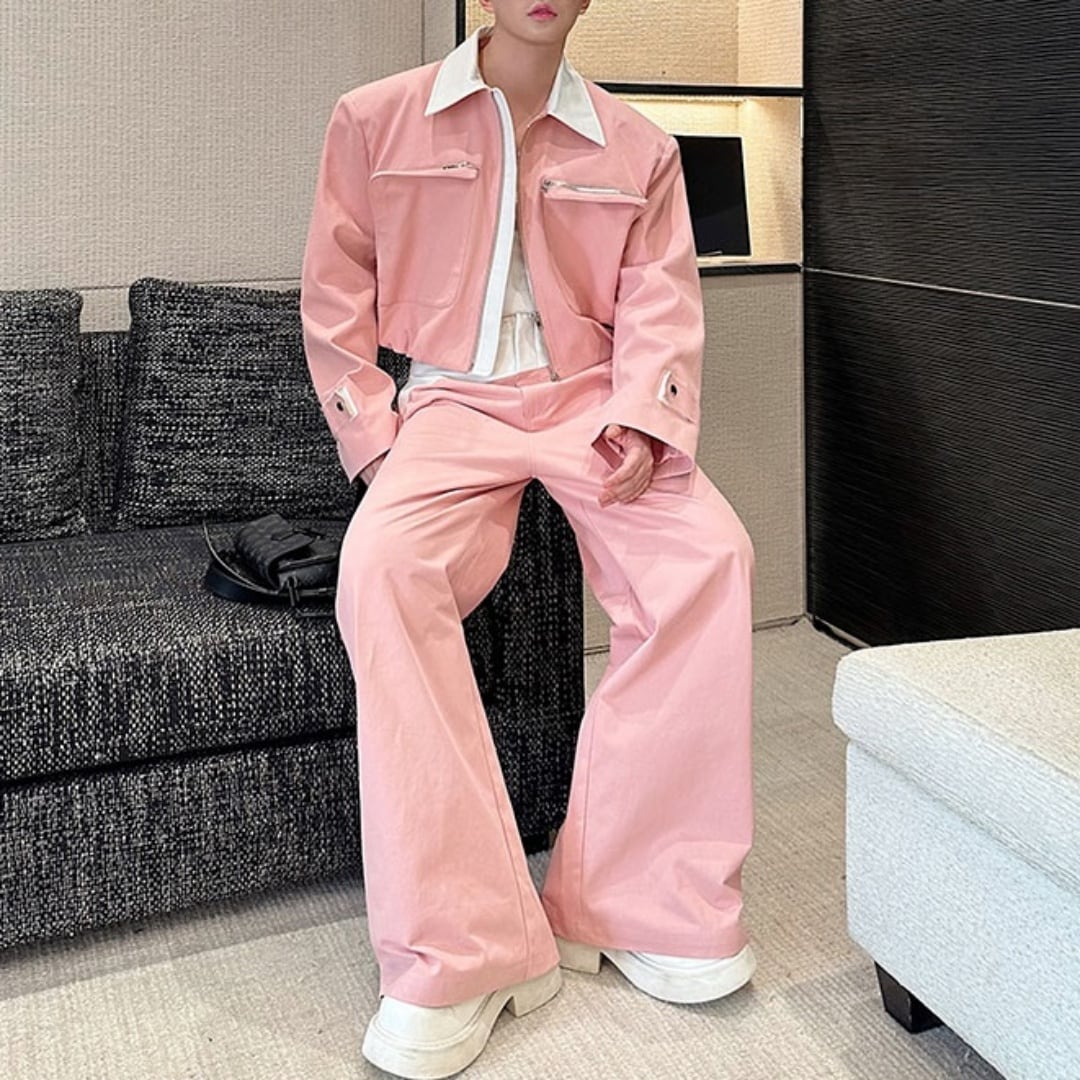 バイカラー レザー切替 カジュアルセットアップ 2カラー D11442