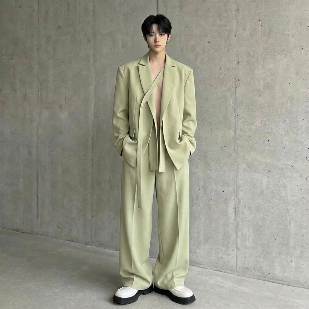 ノッチドラペルジャケット&ワイドパンツスーツ セットアップ 3カラー D11471